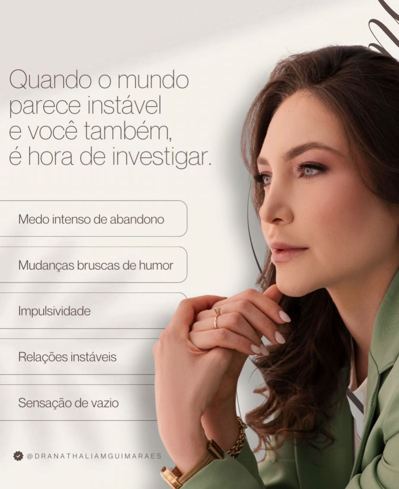 Sou médica dedicada à prática de uma psiquiatria humanizada, voltada para todas as fases da vida. Acredito que cada pessoa possui uma história única, que merece ser escutada com atenção, respeito e empatia.